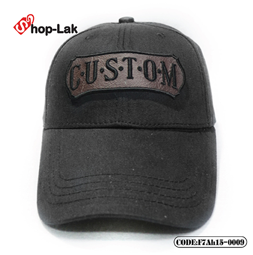 F7Ah15-0009 หมวกแก๊ปแบบเข็มขัดปักป้ายหนัง CUSTOM #สีดำ*PL $