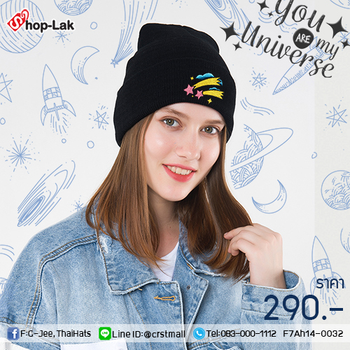 รายละเอียดของสินค้า : >หมวกไหมพรมแฟชั่น  หมวกไหมพรมปักลายดาวตก  No.F7Ah14-0032