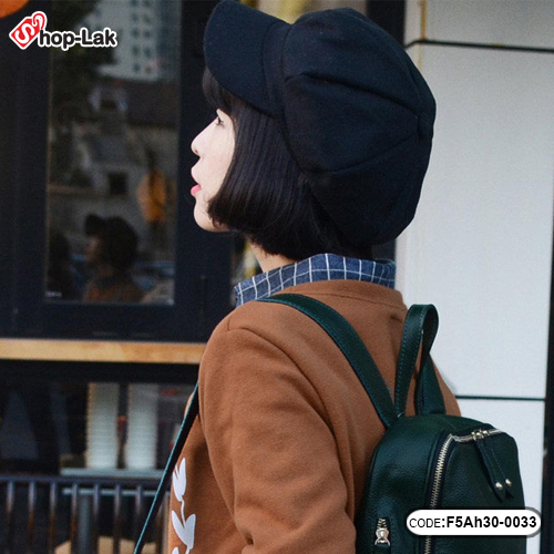 F5Ah30-0033-หมวกทรงฟักทองผ้ากำมะหยี่ #สีดำ*CN $